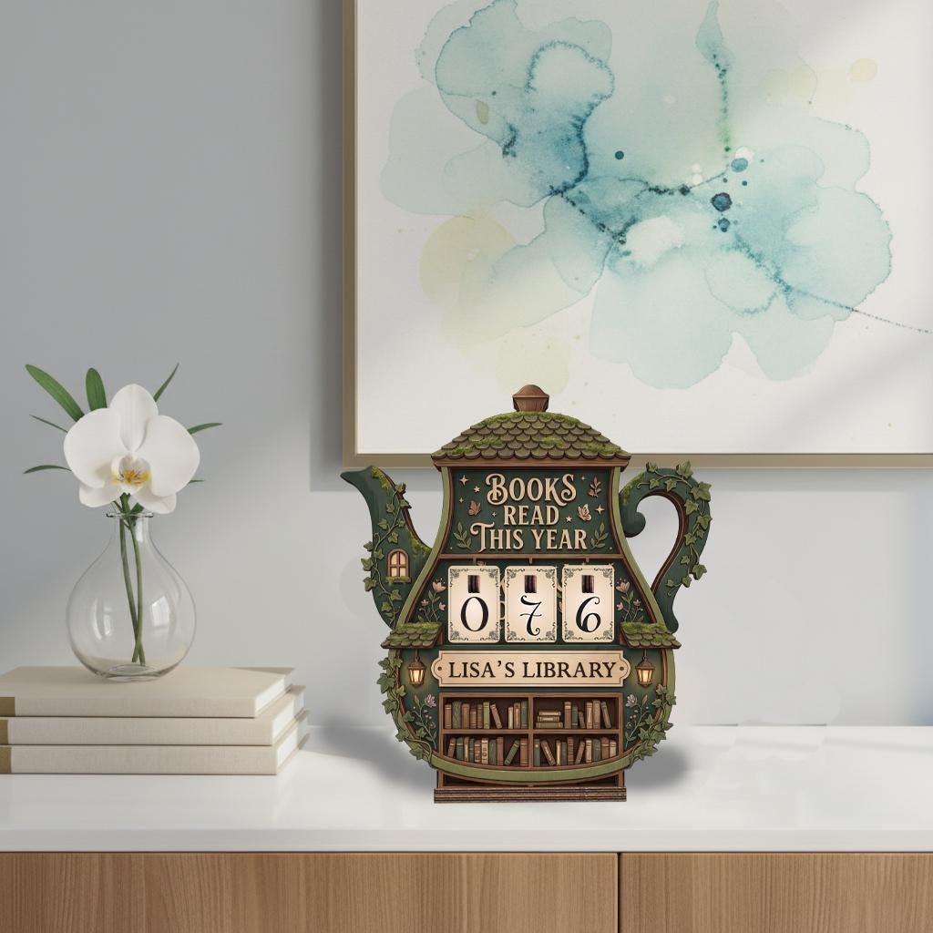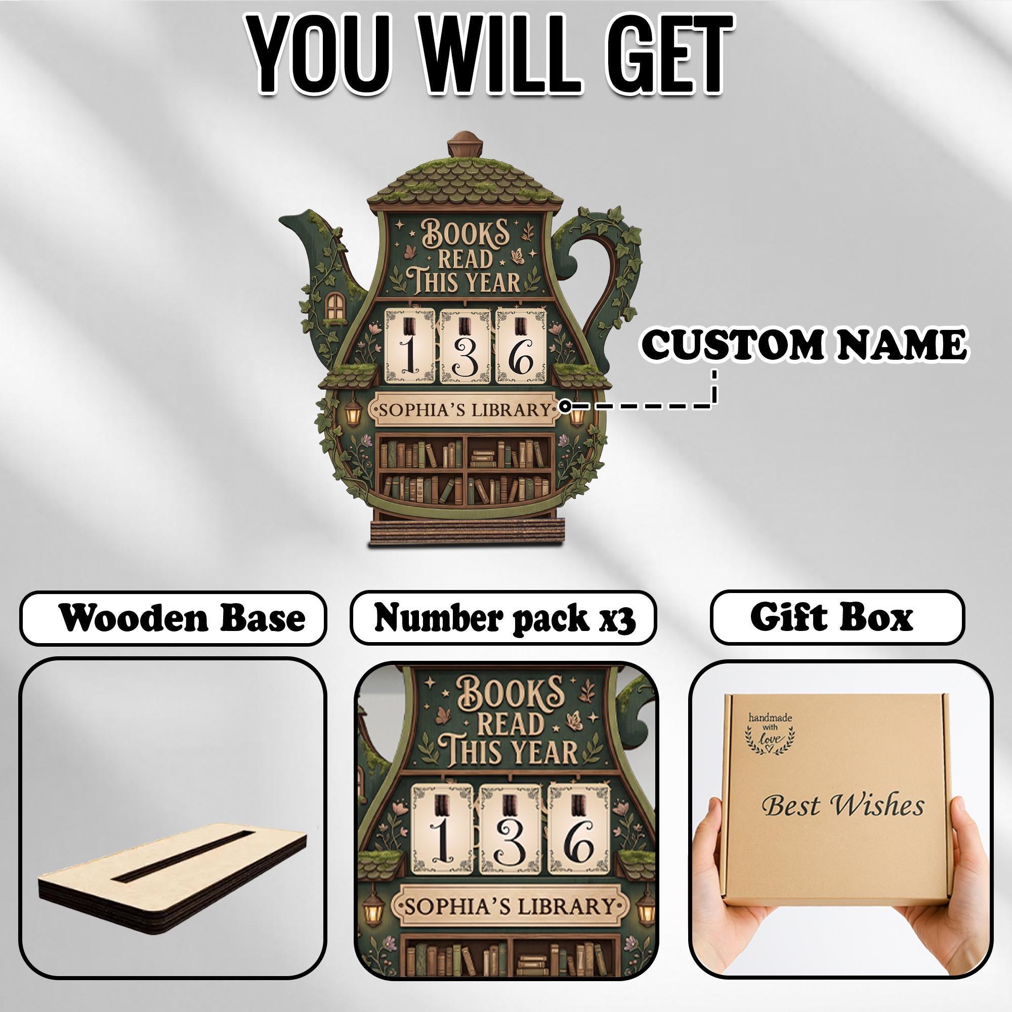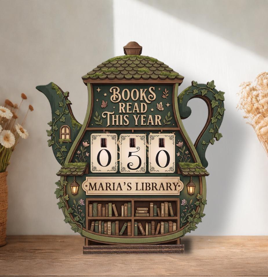 Personalized Books Read This Year Tracker, Cottagecore Book Read Tracker, Wooden Library Display For Book Lovers, Home Library Shelf Decor
