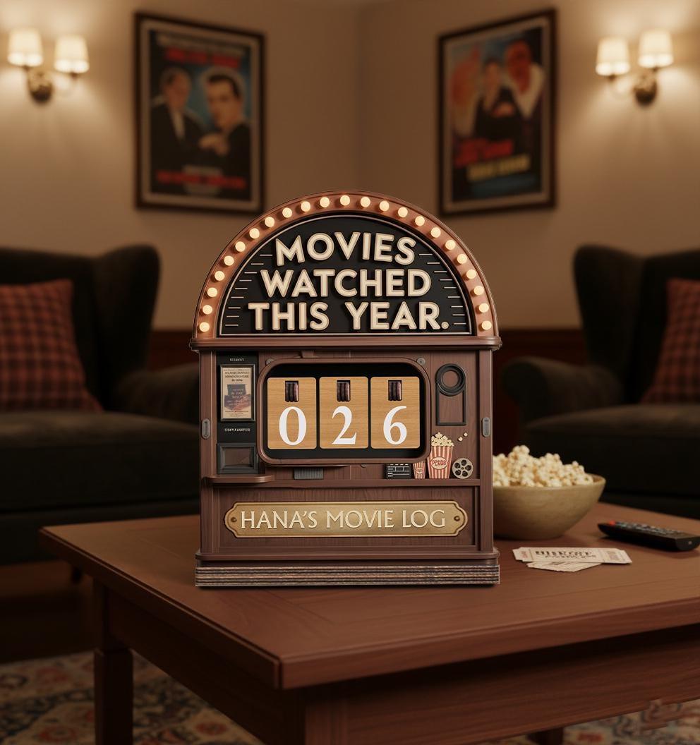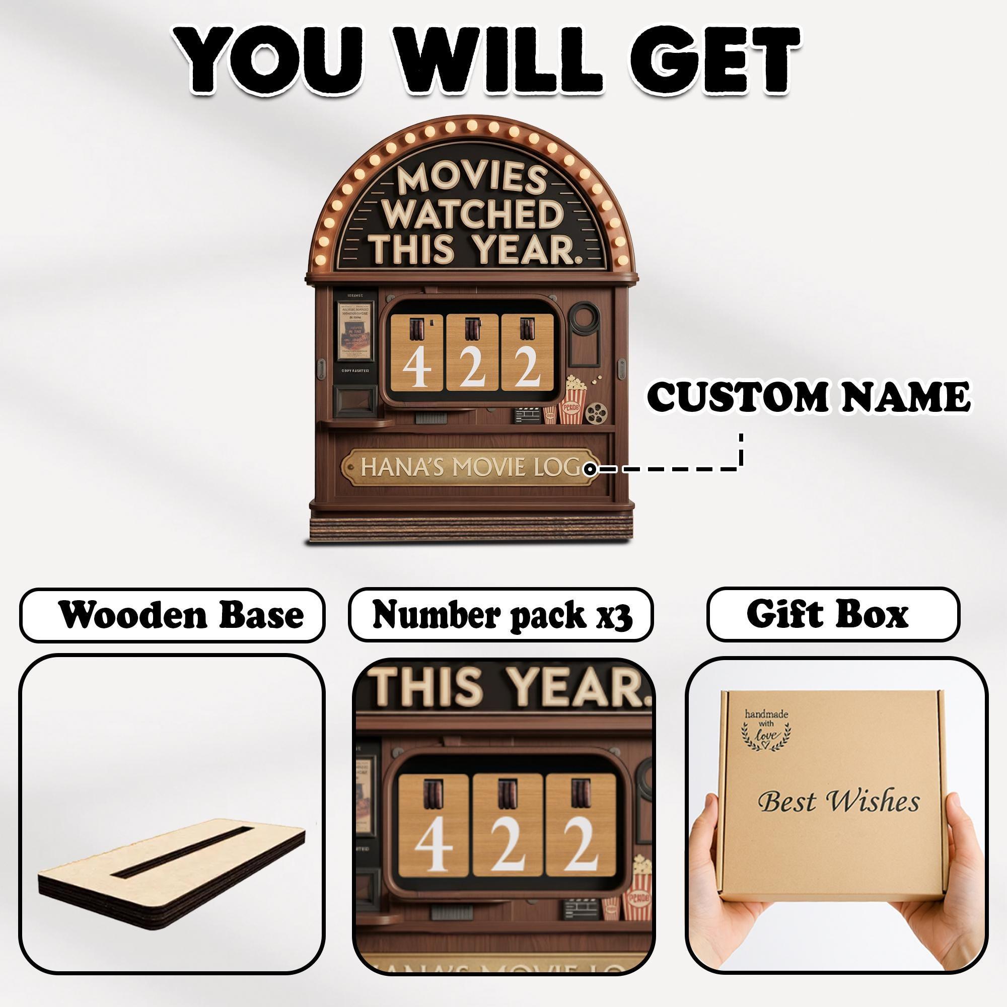 Personalized Vintage Movie Tracker Sign, Movies Watched This Year, Custom Name Cinema Log Sign, Film Lover Shelf Decor, Movie Lover Gift